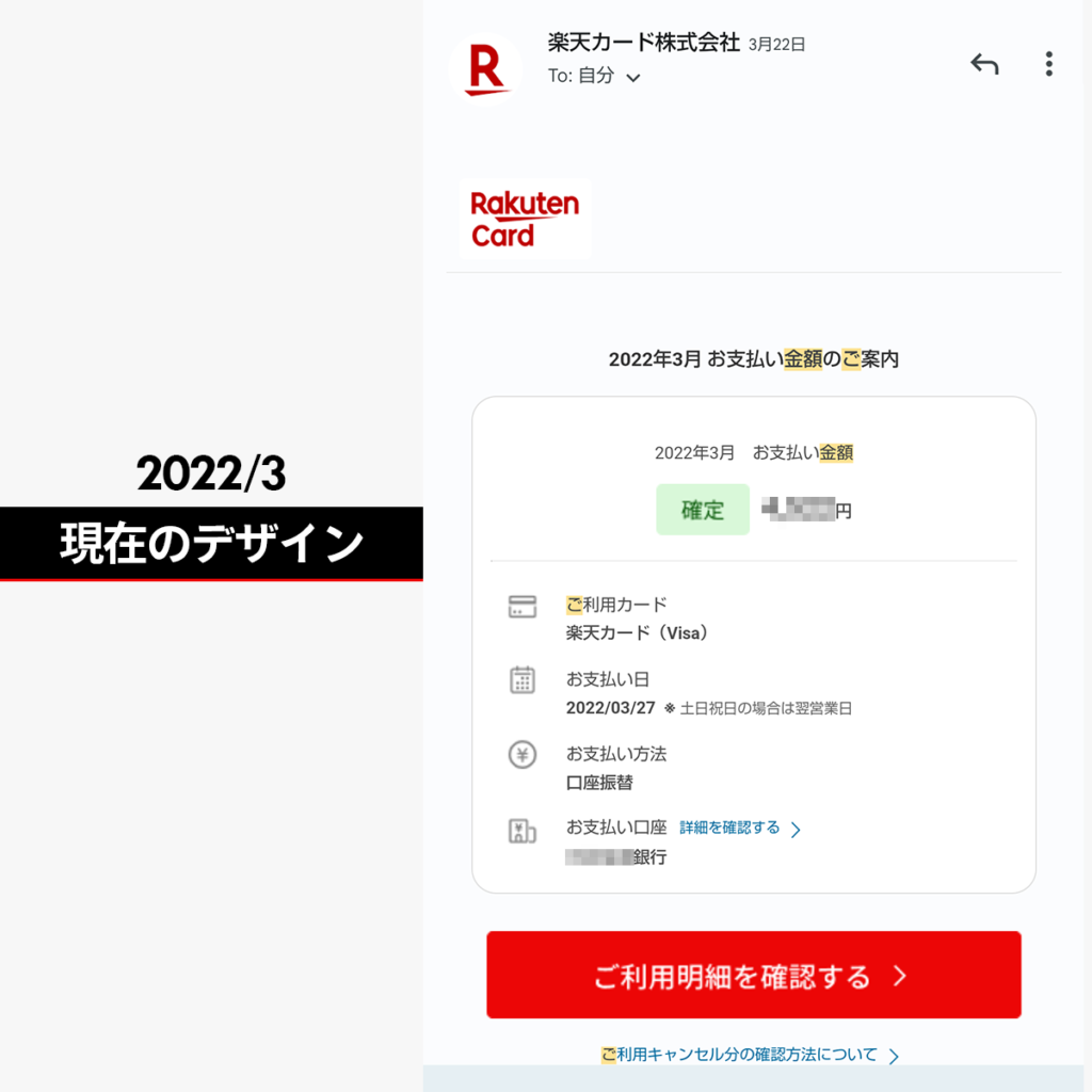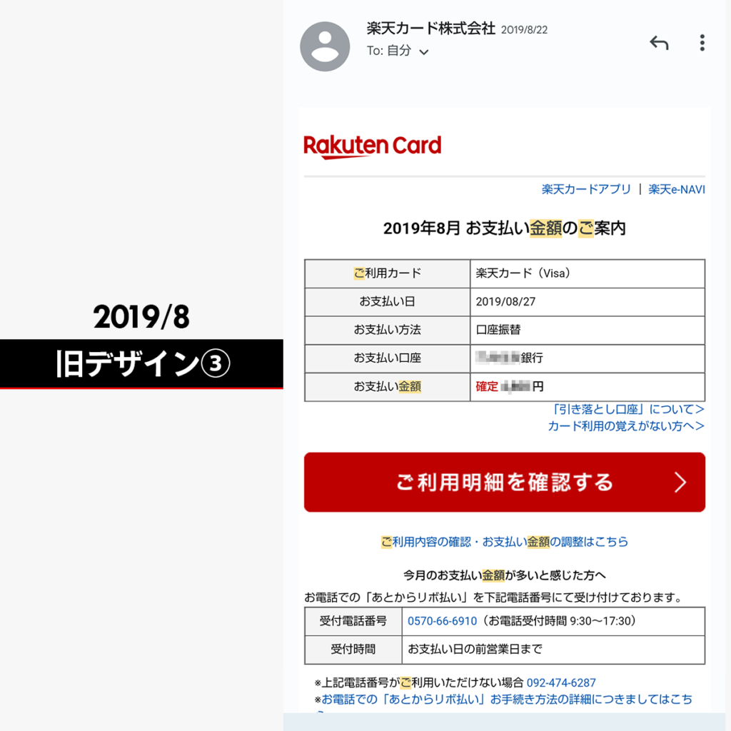 過去のデザインで気になっていたのは、お支払金額のご案内のメールなのに請求金額があまり目立っていないという点でした。