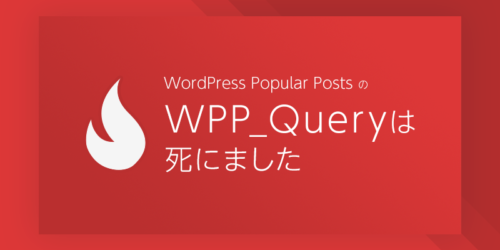2022年7月28日 人気記事プラグイン「WordPress Popular Posts」の「WPP_Query」は廃止されたっぽい。 各サイトでプラグインを自動更新するように設定しているサイトでは「WordPress Popular Posts」も自動更... カテゴリー プログラミング Comments: 0